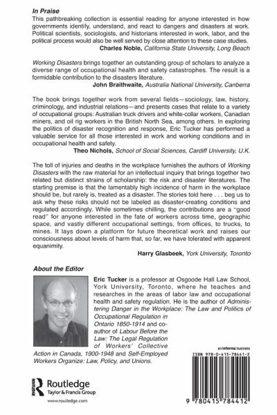 Every day, workers are injured, made ill, or killed on the job. Most often, workers experience these harms individually and in isolation. Particular occurrences rarely attract much public attention beyond, perhaps, a small paragraph in the local newspaper. Instead, these events are normalized. This membrane of normalcy, however, is ruptured from time to time, especially after a disaster. This edited collection draws together original case studies written by leading researchers in Australia, Canada, Great Britain, Sweden, and the United States that examine the politics of working disasters. The essays address two fundamental questions: what gets recognized as a work disaster? And how does the state respond to one? In some instances, it seems self-evident that a disaster has occurred. For example, when a mine explodes killing tens or hundreds of workers simultaneously, the media and politicians recognize that this is not just a personal tragedy for the families of the victims, and that more troubling questions need to be asked about how this could happen. In other circumstances, however, the process that determines what gets recognized as a disaster is much more complicated. "Working Disasters" addresses the politics of recognition in case studies of the long-haul trucking industry, repetitive strain injuries, and lung disease in miners. Once it has recognized that a working disaster has occurred, the state typically goes beyond its routine responses to the daily toll of work-related deaths and injuries. Inquiries may be initiated to review the adequacy of regulatory systems and laws may be amended. Sometimes disasters produce meaningful change, but often they do not. In this text, the politics of response is considered in studies of a factory fire, the loss of an offshore oilrig, lung disease among miners, a mine explosion, and the prosecution of health and safety offences. This book will be of use to occupational health and safety activists and professionals; academics and upper-year students in: industrial relations, labour studies, labour history, law, political science, and sociology.