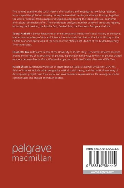 Introduction, Touraj Atabaki, Elisabetta Bini, Kaveh Ehsani.- THE POLITICAL LIFE OF OIL.- Invisible Work: Why is the Role of Labor in Oil Missing from the Literature?; Kaveh Ehsani.- The Zero-Sum Game of Early Oil Extraction Relations in Colombia: Workers, Tropical Oil, and the Police State, 1918-1938; Stefano Tijerina.- Tapline, Welfare Industrialism, and Mass Mobilization in Lebanon, 1950-1964; Zachary Cuyler.- Power of the Possible: Oil Workers and Dual Power in the Iranian Revolution, 1978-1982; Peyman Jafari.- Norwegian Oil Workers: From Rebels to Partners in a Tripartite System; Helge Ryggvik.- The Role of Labor in Transforming Nigerian Oil Politics; Andrew Lawrence.- The Political Life of Oil and Labour under the Citizens' Revolution in Ecuador; Gabriela Valdivia.- THE PRODUCTIVE LIFE OF OIL.- Far from Home, but at Home: Indian Migrant Workers in the Iranian Oil Industry; Touraj Atabaki.- Wildcat: Outsourcing, Expertise, and Oil in Postwar Houston; Betsy A. Beasley.- Pricing Labor in State-led Privatization: a Case Study of the Chinese Oil Industry; Kun-Chin Lin.- Cat Crackers and Picket Lines: Organized Labour in US Labour Gulf Coast Refineries; Tyler Priest.- THE SOCIAL AND URBAN LIFE OF OIL.- Building an Oil Empire: Labor and Gender Relations in American Company Towns in Libya, 1950s-1970s; Elisabetta Bini.- Heroic "Black Gold"? Working for Oil and Gas in Western Siberia during the 1960s and 1970s; Dunja Krempin.- The Tengiz Oil Enclave: Labor, Business, and the State; Saulesh Yessenova.- Doubly Invisible: Women's Labour in the US Gulf of Mexico Offshore Oil and Gas Industry; Diane Austin.
