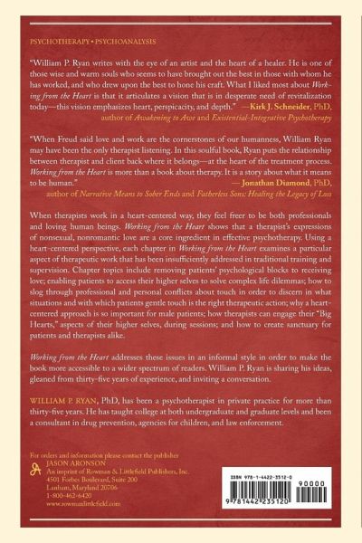 Working from the Heart advocates for a deeper understanding that the therapist's expressions of non-sexual, non-romantic love are a core ingredient in effective psychotherapy. From a heart-centered perspective it provides therapists with ways of helping their patients forgive themselves, remove their blocks to receiving love, and engaging the realms of their emotional hearts and Higher Self in order to solve complex life dilemmas.