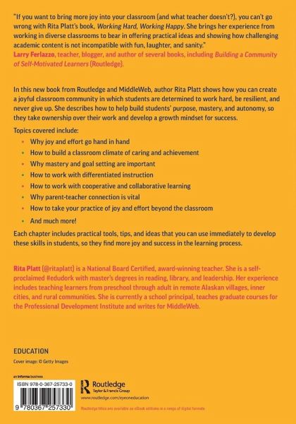 In this new book, author Rita Platt shows how you can create a joyful classroom community in which students are determined to work hard, be resilient, and never give up. Learn how ti build students' purpose, mastery, and autonomy, so they take ownership over their work and develop a growth mindset for success.