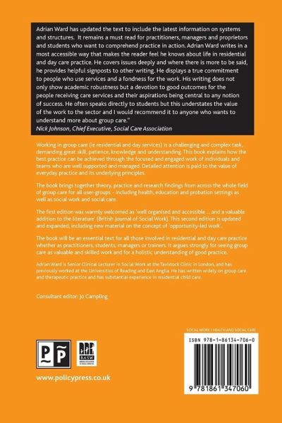 Working in group care (ie residential and day services) is a challenging and complex task, demanding great skill, patience, knowledge and understanding. This book explains how best practice can be achieved through the focused and engaged work of individuals and teams who are well supported and managed.