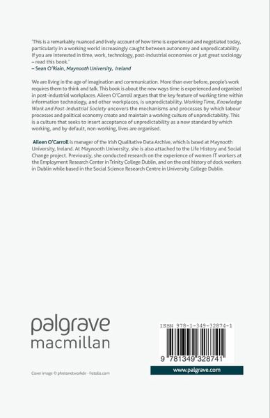 We are living in the age of imagination and communication. This book, about the new ways time is experienced and organised in post-industrial workplaces, argues that the key feature of working time within knowledge, and other workplaces, is unpredictability, creating a culture that seeks to insert acceptance of unpredictability as a new 'standard'.