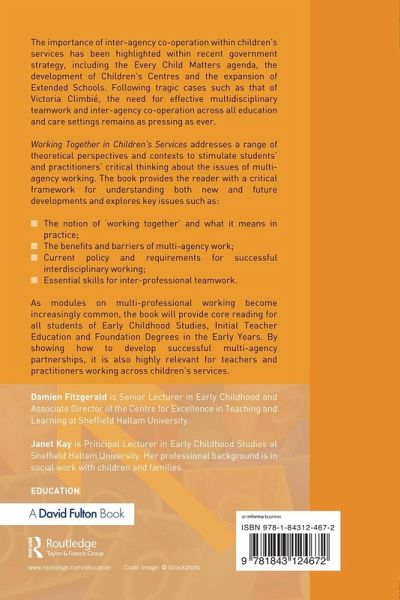 The importance of interagency cooperation within children's services has been highlighted within recent government strategy, including the Every Child Matters agenda, the development of Children's Centres and the expansion of Extended Schools. Following tragic cases such as Victoria Climbie, the need for effective multi-disciplinary teamwork and interagency co-operation across all education and care settings remains as pressing as ever. Working Together in Children's Services addresses a range of theoretical perspectives and contexts to stimulate students and practitioners critical thinking about the issues of multi-agency working. The book provides the reader with a critical framework for understanding both new and future developments and explores key issues like: The notion of "working together" and what it means in practice The benefits and barriers of multi-agency work Current policy and requirements for successful interdisciplinary working Essential skills for inter-professional teamwork. As modules on multi-professional working become increasingly common, the book will provide core reading for all students of Early Childhood Studies, Initial Teacher Education and Foundation Degrees in the Early Years. By showing how to develop successful multi-agency partnerships, it is also highly relevant for teachers and practitioners working across children's services.
