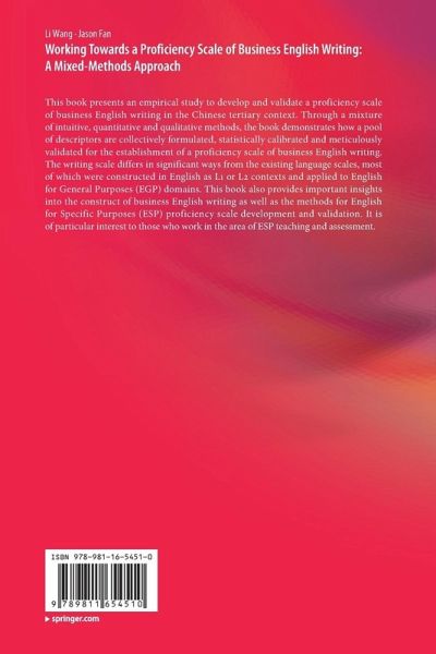 This book presents an empirical study to develop and validate a proficiency scale of business English writing in the Chinese tertiary context. Through a mixture of intuitive, quantitative and qualitative methods, the book demonstrates how a pool of descriptors are collectively formulated, statistically calibrated and meticulously validated for the establishment of a proficiency scale of business English writing. The writing scale differs in significant ways from the existing language scales, most of which were constructed in English as L1 or L2 contexts and applied to English for General Purposes (EGP) domains. This book also provides important insights into the construct of business English writing as well as the methods for English for Specific Purposes (ESP) proficiency scale development and validation. It is of particular interest to those who work in the area of ESP teaching and assessment.