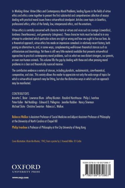 Working Virtue is the first substantial collective study of virtue theory and contemporary moral problems. Leading figures in ethical theory and applied ethics discuss topics in bioethics, professional ethics, ethics of the family, law, interpersonal ethics, and the emotions.