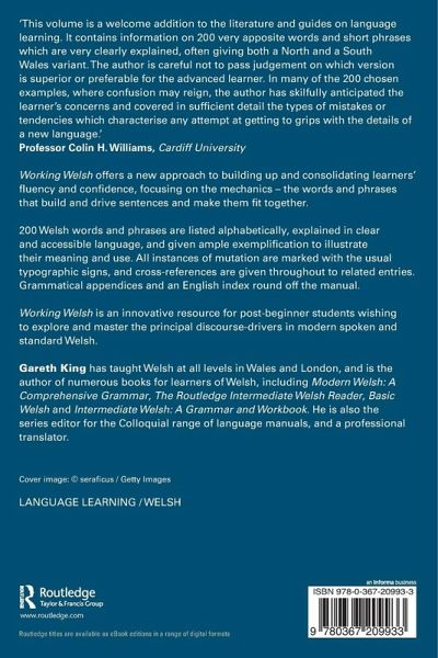 Working Welsh offers a new approach to building up and consolidating learners' fluency and confidence, focusing on the mechanics - the words and phrases that build and drive sentences and make them fit together.