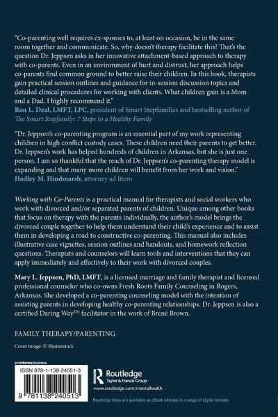Working with Co-Parents is a practical manual for therapists and social workers who work with divorced and/or separated parents of children. Unique among other books that focus on therapy with the parents individually, the author's model brings the divorced couple together to help them understand their child's experience and to assist them in developing a road to constructive co-parenting. This manual also includes illustrative case vignettes, session outlines and handouts, and homework reflection questions. Therapists and counselors will learn tools and interventions that they can apply immediately and effectively to their work with divorced couples.