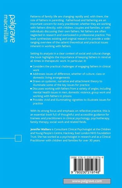 Patterns of family life are changing rapidly and; with them, the role of fathers in parenting. Fatherhood and fathering are an important concern for every practitioner, whether they are working with fathers directly, with children, couples and families, or with individuals discussing their own fathers. Yet fathers are often neglected in research and overlooked in professional practice. This book synthesises existing and original research to provide a wide-ranging overview of the salient theoretical and practical issues inherent in working with fathers.
