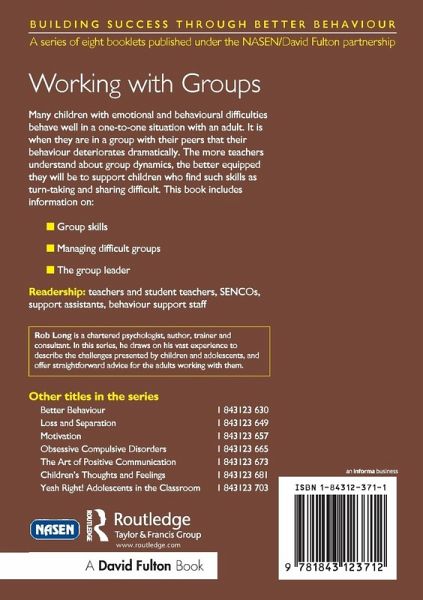 Many children with emotional and behavioral difficulties behave well in a one-to-one situation with an adult. It is when they are in a group with their peers that their behavior deteriorates dramatically. The more teachers understand about group dynamics, the better equipped they will be to support children who find such skills as turn-taking and sharing difficult. This book looks at: group skills managing difficult groups the group leader.