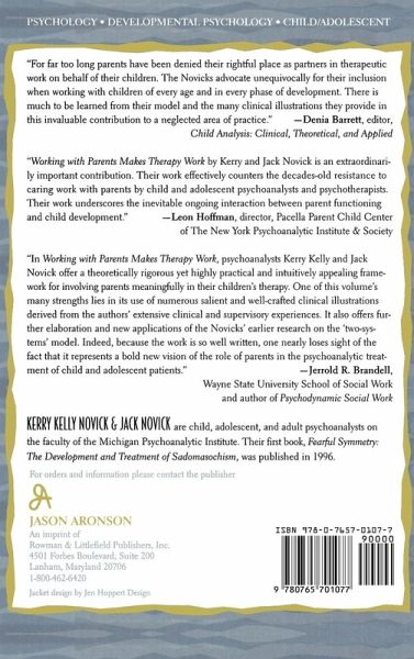 Basing their work on the idea that psychoanalytic therapy and technique require more rather than less from the therapist, the Novicks explore the crucial role of parents' work in child and adolescent treatment. They show that child and adolescent therapies have two goals_restoring the child to progressive development and rebuilding the parent-child relationship as a lifelong resource. With vivid clinical examples, this book illustrates the expanded range of clinical techniques used with parents to establish an alliance at each phase of treatment.