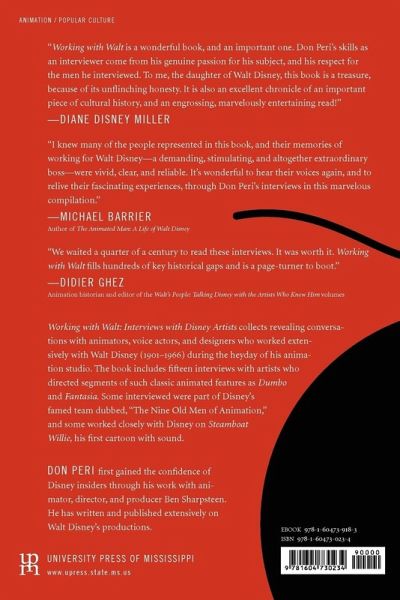 Conversations with top animators, designers, and voice actors who worked directly with the film pioneer Includes interviews with Ken Anderson, Les Clark, Larry Clemmons, Jack Cutting, Don Duckwall, Marcellite Garner, Harper Goff, Floyd Gottfredson, Dick Huemer, Wilfred Jackson, Eric Larson, Clarence Nash, Ken O'Connor, Herb Ryman, Ben Sharpsteen Walt Disney created or supervised the creation of live-action films, television specials, documentaries, toys, merchandise, comic books, and theme parks. His vision, however, manifested itself first and foremost in his animated shorts and feature-length cartoons, which are loved by millions around the world. Working with Walt: Interviews with Disney Artists collects revealing conversations with animators, voice actors, and designers who worked extensively with Disney during the heyday of his animation studio. The book includes fifteen interviews with artists who directed segments of such classic animated features as Dumbo and Fantasia. Some interviewed were part of Disney's famed team dubbed "The Nine Old Men of Animation," and some worked closely with Disney on Steamboat Willie, his first cartoon with sound. Among the subjects the interviewees discuss are the studio's working environment, the high-water mark of animation during Hollywood's Golden Age, and Disney's mixture of childlike charm and hard-nosed business drive. Through these voices, Don Peri preserves an account of the Disney magic from those who worked closely with him. Don Peri first gained the confidence of Disney insiders through his work with animator, director, and producer Ben Sharpsteen. He has written and published extensively on Walt Disney's productions.