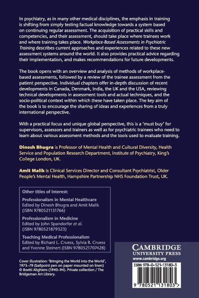 In psychiatry, as in many other medical disciplines, training is shifting from an emphasis on testing factual knowledge towards a system based on continuing assessment and the acquisition of practical skills and competencies. Workplace Based Assessments in Psychiatric Training describes current approaches to these new assessment systems around the world, provides practical advice regarding their implementation and makes recommendations for future developments. The book opens with an overview and analysis of methods of workplace based assessments, followed by a review of the trainee assessment from the patient perspective. Chapters contain in-depth, detailed discussion of recent developments in Canada, Denmark, India, the UK and the USA. The book reviews both technical developments in assessment tools and techniques and the socio-political context within which these have taken place. With a practical focus and unique global perspective, this is a 'must buy' for anyone responsible for the supervision of psychiatric trainees.