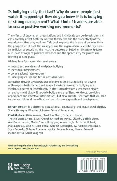 Workplace Bullying is essential reading for anyone with responsibility to help and support workers involved in bullying as a victim, supporter, or investigator. It offers organisations a chance to create an environment that will not only build a more resilient workforce, providing appropriate and effective interventions, but also provides solutions that will lead to the possibility of individual and organisational growth and development.