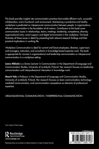 Workplace Communication is ideal for current and future employees, directors, supervisors and managers, instructors, and consultants in knowledge-based expertise work. The book is appropriate for courses in organizational and leadership communication or interpersonal communication in a workplace setting.