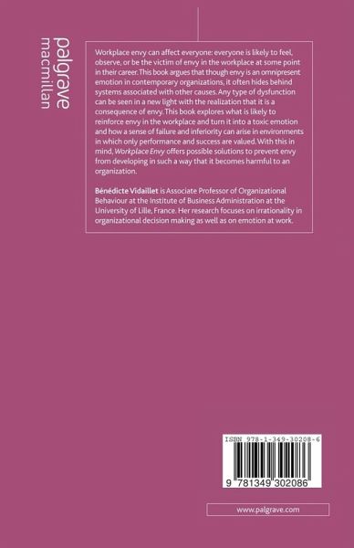 Workplace envy can affect everyone. This book reveals that workplace envy is an omnipresent emotion in contemporary organizations. The factors that are likely to reinforce envy in the workplace are explored in depth, along with possible solutions to prevent envy from developing in such a way that it becomes harmful to an organization.