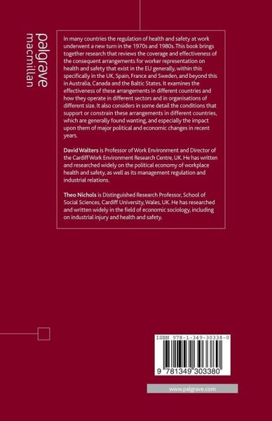 DAVID WALTERS is Professor of Work Environment and Director of the Cardiff Work Environment Research Centre, UK. He has written and researched widely on the political economy of workplace health and safety, as well as its management regulation, and industrial relations THEO NICHOLS is Distinguished Research Professor, School of Social Sciences, Cardiff University, Wales, UK. He has researched and written widely in the field of economic sociology, including on industrial injury and health and safety.