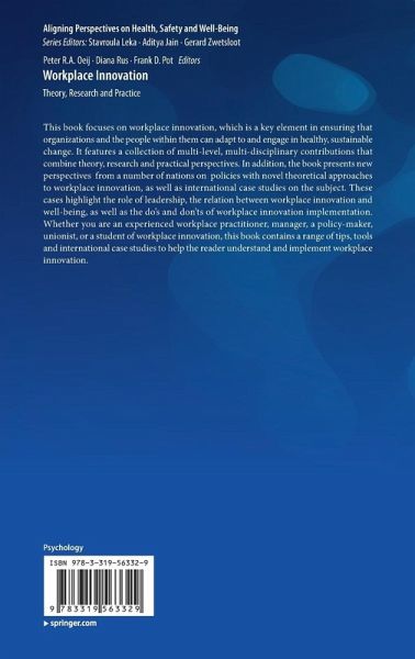 This book focuses on workplace innovation, which is a key element in ensuring that organizations and the people within them can adapt to and engage in healthy, sustainable change. It features a collection of multi-level, multi-disciplinary contributions that combine theory, research and practical perspectives. In addition, the book presents new perspectives from a number of nations on policies with novel theoretical approaches to workplace innovation, as well as international case studies on the subject. These cases highlight the role of leadership, the relation between workplace innovation and well-being, as well as the do's and don'ts of workplace innovation implementation. Whether you are an experienced workplace practitioner, manager, a policy-maker, unionist, or a student of workplace innovation, this book contains a range of tips, tools and international case studies to help the reader understand and implement workplace innovation.