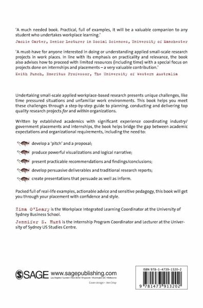 A much needed book. Practical, full of examples, it will be a valuable companion to any student who undertakes workplace learning. More and more students are undertaking work placements and internships as part of their studies. O Leary and Hunt s book will help them to navigate the experience, define their research, and undertake it to benefit themselves and the workplace.