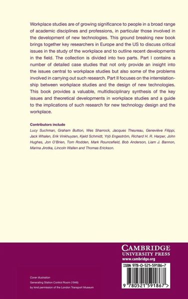 Workplace studies are of growing significance to people in a broad range of academic disciplines and professions, in particular those involved in the development of new technologies. This groundbreaking book brings together key researchers in Europe and the US to discuss critical issues in the study of the workplace and to outline developments in the field. The collection is divided into two parts. Part I contains a number of detailed case studies that not only provide an insight into the issues central to workplace studies but also some of the problems involved in carrying out such research. Part II focuses on the interrelationship between workplace studies and the design of new technologies. This book provides a valuable, multidisciplinary synthesis of the key issues and theoretical developments in workplace studies and a guide to the implications of such research for new technology design and the workplace.
