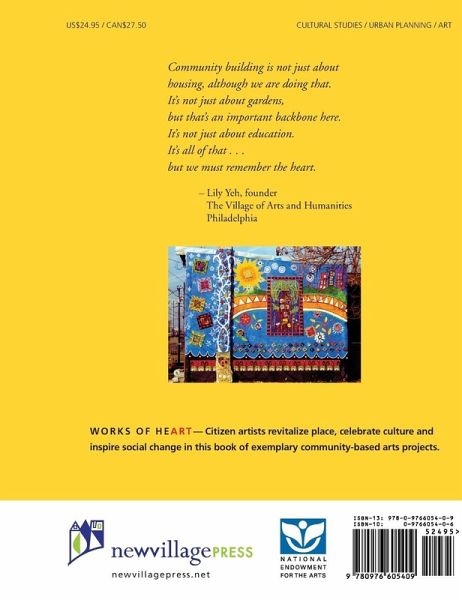 This full-color celebration of communities engaged in creative cultural expression profiles nine exemplary grassroots arts projects depicting an intersection of creativity with love of place. Stories range from children building an African-inspired mud facade on their Oregon middle school to an annual blessing-procession and festival in North Philadelphia that brings to life dozens of the most depressed blocks in urban America. Other regions represented include Minneapolis, Boston, Berkeley, rural Maine, San Francisco, the New York Bronx, and Vancouver, Canada. Community-based arts resources are sited throughout. Works of Heart offers a compendium of multicultural human-interest stories that will inspire and inform both community development professionals and citizen activists. Among those profiled are Lily Yeh and the Village of Arts and Humanities, Clara Wainwright and the Faith Quilts Project, Dolly Hopkins and Public Dreams, and the Beehive Collective.