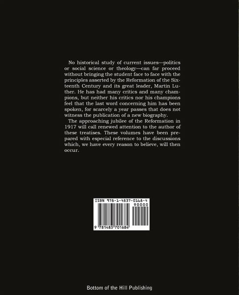 No historical study of current issues-politics or social science or theology-can far proceed without bringing the student face to face with the principles asserted by the Reformation of the Sixteenth Century and its great leader, Martin Luther. He has had many critics and many champions, but neither his critics nor his champions feel that the last word concerning him has been spoken, for scarcely a year passes that does not witness the publication of a new biography. The approaching jubilee of the Reformation in 1917 will call renewed attention to the author of these treatises. These volumes have been prepared with especial reference to the discussions which, we have every reason to believe, will then occur.