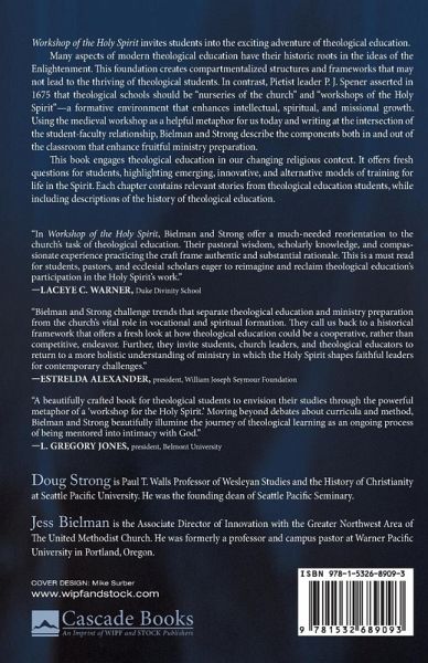 Workshop of the Holy Spirit invites students into the exciting adventure of theological education. Many aspects of modern theological education have their historic roots in the ideas of the Enlightenment. This foundation creates compartmentalized structures and frameworks that may not lead to the thriving of theological students. In contrast, Pietist leader P. J. Spener asserted in 1675 that theological schools should be ""nurseries of the church"" and ""workshops of the Holy Spirit""--a formative environment that enhances intellectual, spiritual, and missional growth. Using the medieval workshop as a helpful metaphor for us today, and writing at the intersection of the student-faculty relationship, Strong and Bielman describe the components both in and out of the classroom that enhance fruitful ministry preparation. This book engages theological education in our changing religious context. It offers fresh questions for students, highlighting emerging, innovative, and alternative models of training for life in the Spirit. Each chapter contains relevant stories from theological education students, while including descriptions of the history of theological education.