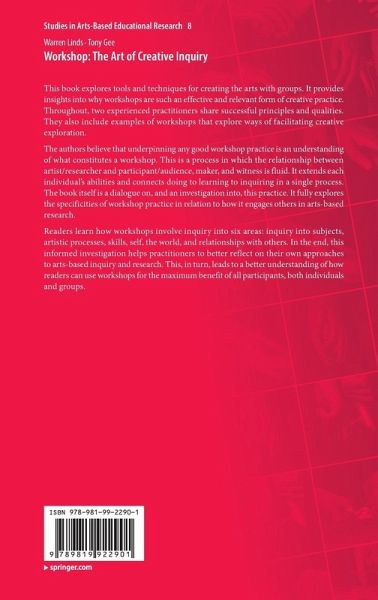 The authors believe that underpinning any good workshop practice is an understanding of what constitutes a workshop. This is a process in which the relationship between artist/researcher and participant/audience, maker, and witness is fluid. It extends each individual's abilities and connects doing to learning to inquiring in a single process. The book itself is a dialogue on, and an investigation into, this practice. It fully explores the specificities of workshop practice in relation to how it engages others in arts-based research.