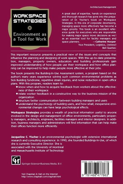 1 Corporate Excellence in Facilities: Why the Workplace is Important.- The Organization-Accommodation (O-A) Relationship.- Adding Value to the O-A Relationship.- The Unexamined O-A Relationship Is Not Worth Having.- Changing Building Design.- Economic and Social Pressures on the O-A Relationship.- Workspace: Asset or Liability?.- 2 Managing Environmental Quality: Current Trends in Office Occupancy.- What Does Facilities Management (FM) Mean Today?.- Integrating FM With Business Strategy.- The Impact on Space Use of Changing Trends in the Nature of Work.- Managing the Human Aspect.- Current Trends and the Human Aspect.- 3 Using Occupancy Feedback: A Strategy for Managing Workplace Improvements.- Health Risks in the Office.- The Productivity Debate.- Feedback from Building Occupants.- Total Quality and Customer Satisfaction.- Functional Comfort as a Strategic Planning Concept.- Managing Feedback from Building Occupants.- 4 Building-In-Use Assessment: An Occupancy Feedback System.- How Building-In-Use Assessment Works.- An Introduction to Building-In-Use Assessment.- Carrying Out Building-In-Use Assessment.- Applying BIU Results to Problem Solving.- Communication with Occupants.- Builidng-In-Use Assessment in Practice.- Using Feedback for Continuous Improvement.- 5 Building-In-Use Assessment of Building Systems: Air Quality, Thermal Comfort, and Building Noise Control.- Building Systems' Dimensions of Functional Comfort.- The Air Quality Dilemma.- The Thermal Comfort Paradox.- The Quandary of Building Noise Control.- How Building Systems Can Increase Functional Comfort.- 6 Building-In-Use Assessment of Planning and Design of Interior Space: Spatial Comfort, Privacy, and Office Noise Control.- Factors Influencing the Design of Space for Work.- The SpatialComfort Crisis.- Building-In-Use Assessment of Spatial Comfort.- The Privacy Conundrum.- The Challenge of Office Noise Control.- The Future of the Individual Workplace.- 7 Building-In-Use Assessment of Lighting Comfort.- The Lighting Comfort Opportunity.- Building-In-Use Assessment of Lighting Comfort.- Human Factors in Lighting.- Lighting and Morale.- Windows and Daylighting.- Improving Lighting Comfort.- 8 Building Convenience and Building Amenities.- What Is Building Convenience?.- Building-In-Use Assessment of Building Convenience.- Measuring Building Convenience.- Building Amenities and the Future of Building Convenience.- 9 Occupants' Feedback as a Decision-Making Tool: Three Case Studies.- Organizational Learning Through the Acquisition of Feedback.- International Headquarters Offices: Conflicts Over Information Utilization.- National Telecommunications Company: Diagnostic Information as a Tool for Strategic Planning.- Commercial Real Estate Company: Using Feedback to Increase Competitive Advantage.- Devising Corporate Accommodation Strategy.- 10 The Politics of Occupants' Feedback: Issues in Implementation.- Applying Occupant Feedback.- Legal and Political Issues.- Improving Communication.- Environmental Empowerment: Are We Ready?.- 11 Optimizing Occupancy: Strategic Planning of the Organization-Accommodation Relationship.- Accommodation Strategy and the O-A Relationship.- Planning the Future of the O-A Relationship.- Corporate Accommodation as a "Strategic Functional Unit".- Using Accommodation to Add Value to Products and Services.- Reengineering the Office as a Tool for Work.- Implementation of an "Integrated Workplace Strategy".- Final Words.- Appendix: The Buiding-In-Use Databases and How They are Used.