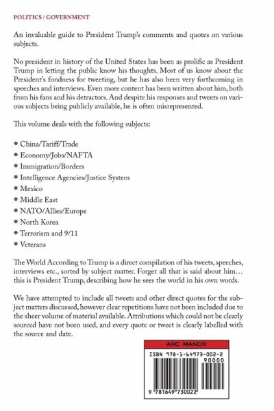 The World According to Trump is a direct compilation of his tweets, speeches, interviews etc., sorted by subject matter. Forget all that is said about him...this is President Trump, describing how he sees the world in his own words.