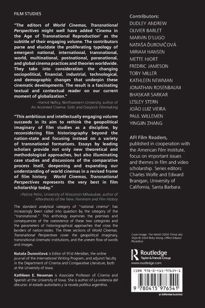 Preface Part One: The Geopolitical Imaginary of Cinema Studies 1. Transnational Film Theory: Decentered Subjectivity, Decentered Capitalism Kathleen Newman 2. On the Plurality of Cinematic Transnationalism Mette Hjort 3. Tracking "Global Media" in the Outposts of Globalization Bhaskar Sarkar 4. Time Zones and Jetlag: The Flows and Phases of World Cinema Dudley Andrew 5. Vector, Flow, Zone: Towards a History of Cinematic Translatio Nataa Durovicová Part Two: Cinema as Transnational Exchange 6. Chinese Cinema and Transnational Film Studies Yingjin Zhang 7. A National Cinema Abroad: From Production to Viewing Toby Miller 8. Aural Identity, Genealogies of Sound Technologies, and Hispanic Transnationality on Screen Marvin D'Lugo 9. How Movies Move (Between Hong Kong and Bulawayo, Between Screen and Stage...) Lesley Stern 10. New Paradoxes of Africa's Cinemas Olivier Barlet 11. The Transnational Other: Street Kids in Contemporary Brazilian Cinema João Luiz Vieira Part Three: Comparative Perspectives 12. Fantasy in Action Paul Willemen 13. Vernacular Modernism: Tracking Cinema on a Global Scale Miriam Hansen 14. Globalization and Hybridization Fredric Jameson 15. From Playtime to The World: The Expansion and Depletion of Space Within Global Economies Jonathan Rosenbaum Bibliography Contributors Index