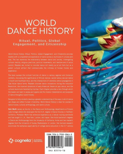 World Dance History: Ritual, Politics, Global Engagement, and Citizenship provides readers with a comprehensive exploration of dance across a multitude of cultures and eras. The text examines the relationship between dance and society, interrogating cultural identity, religious practices, political movements, and mechanisms of social control. Readers are invited to consider dance not merely as an art form but as a potent cultural artifact that communicates the richness of human history and experience. The book surveys the cultural function of dance in various regional and historical contexts, discussing the significance of African dances, sacred versus secular dance in South and Southeast Asia, and the intersections of ceremony versus propaganda in East Asian dance forms. Readers discover dance innovations during the Industrial Revolution, the nuanced dynamism of early American theatrical jazz dance, and the cultural revolutions heralded by hip-hop. Each chapter provides a lens through which the reader can learn to assess and appreciate the diverse interpretations and purposes of dance throughout world history. Designed to help students develop a greater understanding of the ways in which dance can shape and reflect human citizenship, World Dance History is ideal for courses in dance history, cultural anthropology, and world culture.