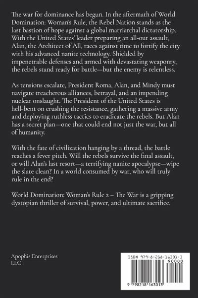 six month after the first book, we see hat the world is on the cusp of extinction. Follow Alan, Mindy and Emerald in the rebel city preparing for war. War is coming fast. The world will change. this book is the sequel to World Domination: Woman's rule. enjoy the book!