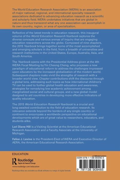 Reflective of the latest trends in education research, this inaugural volume of the World Education Research Yearbook captures the diverse concepts and various arenas of inquiry that are engaging education researchers across the globe. Comprised of nine chapters, the 2015 Yearbook brings together some of the most accomplished and emerging scholars in the field, from a breadth of universities and research institutions in the United States, Europe, Australia, Asia, and South America.
