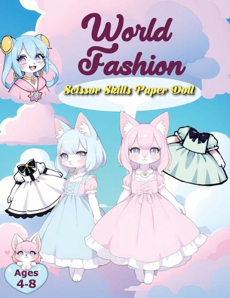 World Fashion Paper Doll Color, Cut, Play Anime Cat Dress Up: Coloring book for kids - Anime cat paper dolls (Paper Doll Coloring Book) Scissor Skills Paper Doll: Make Your Own Fashion Cat Doll for Girls 4-8