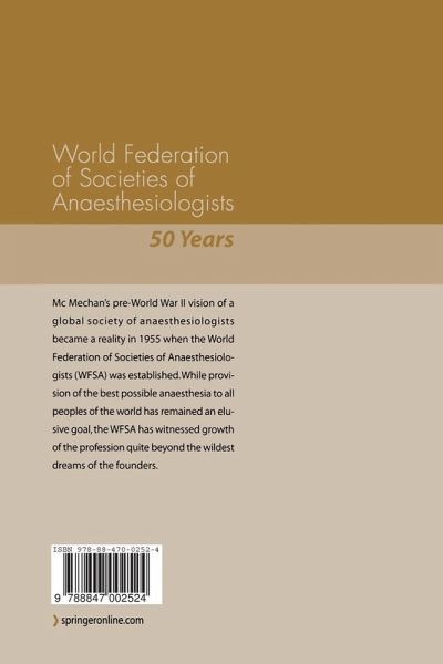 Appreciative that some of the founders were still around, able and willing, the WFSA Executive Committee (1998) agreed to commission this 50 years commemorative book to be published and presented to the national member societies on the occasion of the World Congress of Anesthesiologists 2004 in Paris, France, where the idea of the establishment of WFSA was germinated.