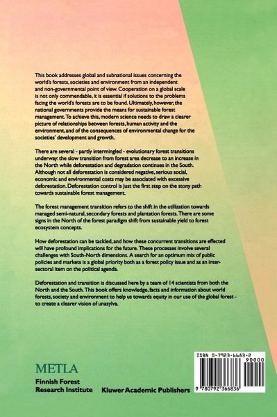 This book reports one part of the findings tive, due to vested national and internation of the research project The Forests in the al interests. South and North - Transition from Defor This book presents a set of new research estation to Sustainable Forest Policies in findings emerging from our comprehensive Redressing Global Warming. The project research project. The book can be regard was coordinated and partly funded by the ed as a follow-up to and elaboration of our World Institute for Development Econom previous research published in 1996 by Kluwer Academic Publishers, Sustainable ics Research of the United Nations University (UNUIWIDER). The Finnish Forestry ChallengesforDeveloping Coun Forest Research Institute (METLA) and the tries, edited by Matti Palo and Gerardo Institute for Applied Economic Research Mery. (IPEAIDIPES) in Brazil were among the To facilitate coordination, interaction eleven implementing institutesthat contrib and exchange of information the project uted financially to the research. Director organized three workshops between 1994 Eustaquio J. Reis from IPEA served as the and 1996.The first and last workshops were External Project Coordinator in Rio de Ja held in Finland and the second one in In neiro while I acted as the External Project donesia, in cooperation with the Center for Director in Helsinki. International Forest Research (CIFOR).