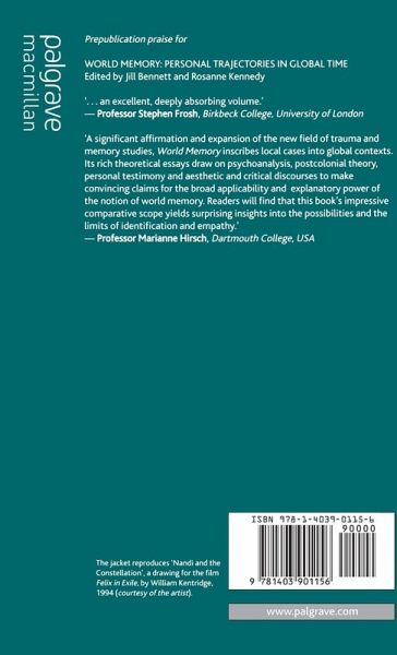 'A significant affirmation and expansion of the new field of trauma and memory studies, World Memory inscribes local cases into global contexts. Its rich theoretical essays draw on psychoanalysis, postcolonial theory, personal testimony and aesthetic and critical discourses to make convincing claims for the broad applicability and explanatory power of the notion of world memory. Readers will find that this book's impressive comparative scope yields surprising insights into the possibilities and the limits of identification and empathy.' - Marianne Hirsch, Dartmouth College, USA
