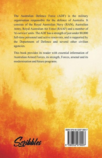The Australian Defence Force (ADF) is the military organisation responsible for the defence of Australia. It consists of the Royal Australian Navy (RAN), Australian Army, Royal Australian Air Force (RAAF) and a number of 'tri-service' units. The ADF has a strength of just under 80,000 full-time personnel and active reservists, and is supported by the Department of Defence and several other civilian agencies. This book provides its reader with essential information of Australian Armed Forces, its strength, Forces, arsenal and its modernisation and future programs.