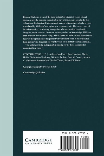 Introduction J. E. J. Altham and Ross Harrison 1. The idea of equality revisited Jon Elster 2. Is the idea of purely internal consistency of choice bizarre? Amartya Sen 3. Science, ethics, and objectivity Nicholas Jardine 4. Fallibilism and objectivity: science and ethics Christopher Hookway 5. Might there be external reasons? John McDowell 6. Aristotle on human nature and the foundations of ethics Martha C. Nussbaum 7. A most peculiar institution Charles Taylor 8. Reflection and confidence J. E. J. Altham 9. The shape of a life Martin Hollis 10. Replies Bernard Williams Index.