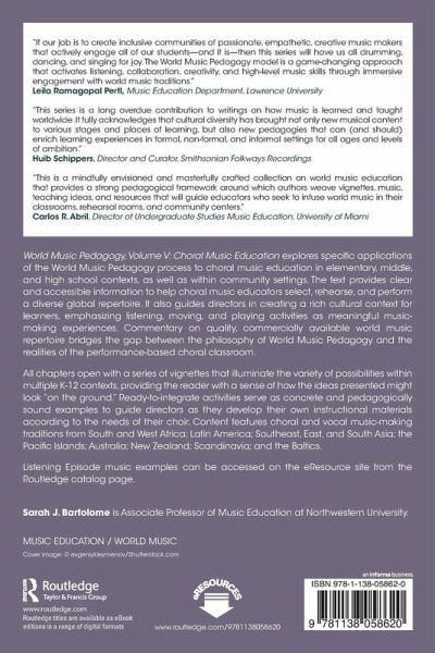 World Music Pedagogy, Volume V: Choral Music Education explores specific applications to choral music education in elementary, middle, and high school, as well as within community settings. The text helps choral music educators select, rehearse, and perform a diverse global repertoire.