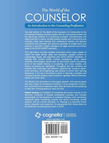 The sixth edition of The World of the Counselor: An Introduction to the Counseling Profession provides readers with an illuminating window into the day-to-day realities of a practicing counselor. Comprehensive and highly practical in nature, the text presents readers with critical skills and concepts, helps them develop their professional identity, and features illustrative case examples and personal narratives to bridge theory and practice. This new edition includes updated information within every chapter to reflect the latest ethical codes and standards, updated content on cutting-edge issues, and alignment with 2016 CACREP standards. In keeping with current trends, cultural competence, social justice concerns, technological issues such as tele-mental health counseling, some of the newest theories in counseling, and crisis, disaster, and trauma counseling are highlighted. Throughout the text, students are provided with meaningful self-reflection opportunities, hands-on experiential activities, and enlightening case studies to enrich their learning experience. A full set of ancillaries to assist in teaching is available and includes a sample syllabus, exam questions, vignettes, ethical dilemmas, videos, and much more. Each of the eight common-core content areas of CACREP are covered through chapters on professional issues (e.g., history, professional organizations, characteristics of the professional counselor), standards in the professional (e.g., CACREP, credentialing, ethics, cross-cultural and social justice competence), counseling skills, counseling theories, normal and atypical human development, group counseling, couples and family counseling, testing and assessment, research, and consultation and supervision. Two dedicated chapters cover cultural competence and social justice issues. The last three chapters highlight school counseling; mental health, rehabilitation, and addiction counseling; and college counseling. New vignettes from counselors in the field are peppered throughout these chapters. An afterword offers sage advice for applying to graduate school and finding a job. The World of the Counselor is a thoroughly research- and practice-based text that is ideal for counselors-in-training. It is an exceptional introduction to the field and an especially useful book for those who are preparing to take their licensing exams or enter the field.