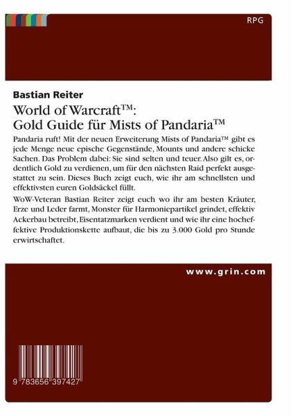Pandaria ruft! Mit der neuen Erweiterung Mists of Pandaria(TM) gibt es jede Menge neue epische Gegenstände, Mounts und andere schicke Sachen. Das Problem dabei: Sie sind selten und teuer. Also gilt es, ordentlich Gold zu verdienen, um für den nächsten Raid perfekt ausgestattet zu sein. Dieses Buch zeigt euch, wie ihr am schnellsten und effektivsten euren Goldsäckel füllt. Farmen: Neue Kräuter, Erze und Leder sind eine erstklassige Einnahmequelle. Hier findet ihr die besten Sammelrouten samt Verwertungstipps. Grinden: Hier dreht sich alles ums Töten der richtigen Monster, um die begehrten Harmoniepartikel zu farmen, die im 10er-Pack einen Geist der Harmonie ergeben - das wertvollste Handwerksmaterial von Mists of Pandaria(TM). Ackerbau: Man mag vom Ackerbau in WoW halten was man will, als Gold-Quelle ist er hervorragend geeignet. Hier erfahrt ihr, was ihr wie anbauen müsst, um möglichst viel zu verdienen. Kochzutaten: Mit den passenden Quests und der hier gezeigten Taktik holt ihrjede Menge Eisentatzmarken - die Währung für hochwertige Kochzutaten in Mists of Pandaria(TM). Gold verdienen für Fortgeschrittene: Die hier vorgestellte Strategie zeigt, wie ihr mit insgesamt vier Chars - richtige Klassen und Berufe vorausgesetzt - eine hocheffektive Produktionskette aufbaut, die bis zu 3.000 Gold pro Stunde erwirtschaftet. Bastian Reiter ist seit der Beta-Version von World of Warcraft dabei und hat schon viele Artikel über das Spiel rund um Azeroth auf Websites, in Zeitschriften und Büchern veröffentlicht.