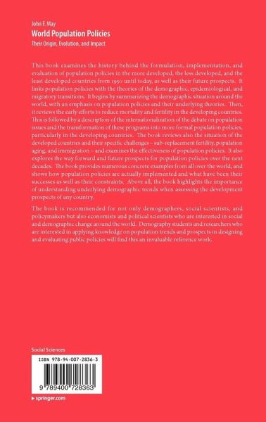 "The book should not, and will not, pass unnoticed, and not just among specialists in the field of population studies proper, but well beyond ... those engaged in geopolitics and international relations. ... John May presents a thorough overview of population policies in developing countries. ... This is a highly readable book. It presents scholarship at its best. The narratives are enhanced by judiciously selected statistical tables. A motto is placed in the heading of each chapter to set the tone for the substantive discussion." (Anatole Romaniuk, Canadian Studies in Population, Vol. 39 (1-2), Spring/Summer, 2012)