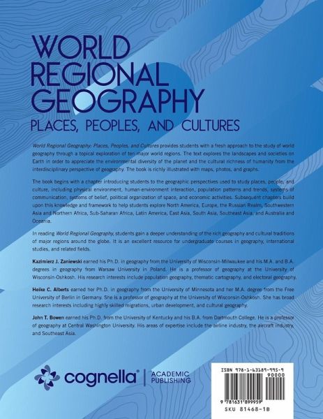 World Regional Geography: Places, Peoples, and Cultures provides students with a fresh approach to the study of world geography through a topical exploration of ten major world regions. The text explores the landscapes and societies on Earth in order to appreciate the environmental diversity of the planet and the cultural richness of humanity from the interdisciplinary perspective of geography. The book is richly illustrated with maps, photos, and graphs. The book begins with a chapter introducing students to the geographic perspectives used to study places, people, and culture, including physical environment, human-environment interaction, population patterns and trends, systems of communication, systems of belief, political organization of space, and economic activities. Subsequent chapters build upon this knowledge and framework to help students explore North America, Europe, the Russian Realm, Southwestern Asia and Northern Africa, Sub-Saharan Africa, Latin America, East Asia, South Asia, Southeast Asia, and Australia and Oceania. Students study demographics, religion, linguistics, politics, agriculture, tourism, foreign and domestic policy, and more as they travel the world. In reading World Regional Geography, students gain a deeper understanding of the rich geography and cultural traditions of major regions around the globe. It is an excellent resource for undergraduate courses in geography, international studies, and related fields. Kazimierz J. Zaniewski earned his Ph.D. in geography from University of Wisconsin-Milwaukee and his M.A. and B.A. degrees in geography from Warsaw University in Poland. He is a professor of geography at the University of Wisconsin-Oshkosh. His research interests include population geography, thematic cartography, and electoral geography. Heike C. Alberts earned her Ph.D. in geography from the University of Minnesota and her M.A. degree from the Free University of Berlin in Germany. She is a professor of geography at the University of Wisconsin-Oshkosh. She has broad research interests including highly skilled migrations, urban development, and cultural geography. John T. Bowen earned his Ph.D. from the University of Kentucky and his B.A. from Dartmouth College. He is a professor of geography at Central Washington University. His areas of expertise include the airline industry, the aircraft industry, and Southeast Asia.