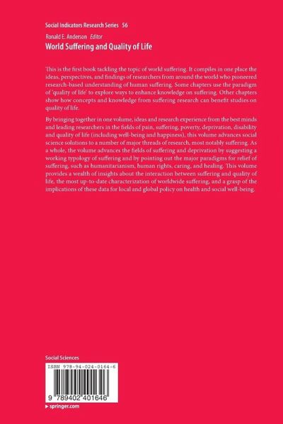 This is the first book tackling the topic of world suffering. It compiles in one place the ideas, perspectives, and findings of researchers from around the world who pioneered research-based understanding of human suffering. Some chapters use the paradigm of 'quality of life' to explore ways to enhance knowledge on suffering. Other chapters show how concepts and knowledge from suffering research can benefit studies on quality of life.