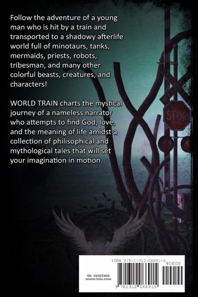 Follow the adventure of a young man who is hit by a train and transported to a shadowy afterlife world full of minotaurs, tanks, mermaids, priests, robots, tribesmen, and many other colorful beasts, creatures, and characters! WORLD TRAIN charts the mystical journey of a nameless narrator who attempts to find God, love, and the meaning of life amidst a collection of philosophical and mythological tales that will set your imagination in motion.