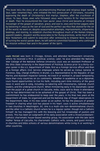 This book tells the story of an uncompromising Pharisee and religious bigot named Saul, later renamed Paul, who initiated the first persecution of Christians, including approving the death of Christianity's first martyr, Stephen, after the crucifixion of Jesus. To Saul, those Jews who followed Jesus were heretics fit for imprisonment or death. Then he encountered the risen savior Jesus Christ and became an intrepid messenger of the gospel of salvation, grace, and love to Jews and former pagans alike by believing in Jesus as the Son of God and the perfect sacrifice that atoned for the sin of the world. He went on, despite assassination attempts, imprisonments, shipwrecks, beatings, and stoning, to establish churches throughout much of the Roman Empire, appoint leaders, dispatch worthy associates to far-flung provinces, write much of the New Testament, and submit to execution after witnessing to Emperor Nero. Accused of turning the world upside down, he left behind committed followers who continued his mission without fear and in the power of the Spirit.