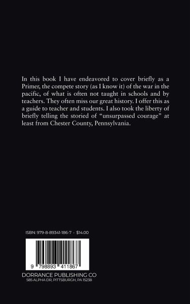 In this book I have endeavored to cover briefly as a Primer, the compete story (as I know it) of the war in the pacific, of what is often not taught in schools and by teachers. They often miss our great history. I offer this as a guide to teacher and students. I also took the liberty of briefly telling the storied of "unsurpassed courage" at least from Chester County, Pennsylvania.