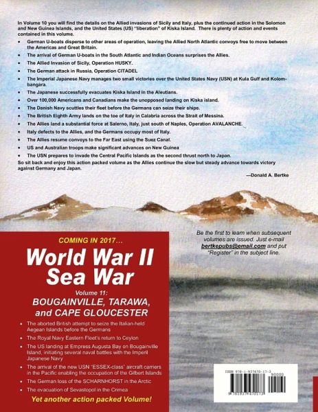 Comprehensive list of day-to-day naval actions from July 1943 through September 1943. Major events include Allied invasions of Sicily and Italy, plus continued action in the Solomon and New Guinea Islands, and the US liberation of Kiska Island.