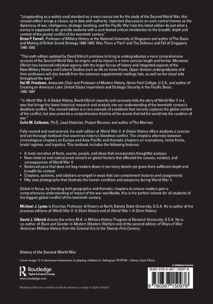 Fully revised and restructured, the 6th edition of World War II: A Global History offers students a concise and yet thorough textbook that examines historyâ s bloodiest conflict. Global in focus, this is the perfect volume for all students of the biggest global conflict of the twentieth century.